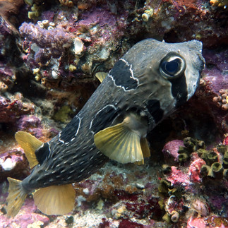 My least favourite thing so far (aside from coming accidentally face-to-face with a Titan trigger monster, as we both rose up and over a rock, at the same time from different directions) has been what the local divers call ‘the green monster’. Far from being living marine life, these are some water currents called thermoclines. A thermocline is basically a layer of water between different depths of water that are at different temperatures- usually, the deeper waters are colder and you’d go through a thermocline layer to pass from warmer to cooler waters. However, this year, due most likely to global warming and the changing ocean currents etc, massive drifts of COLD water having been coming up from the deep and sweeping across shallow waters. You can see when a thermocline is coming as it is like a green haze racing towards you. On the edge, as it approaches, the water all blurs and makes you think your eyes have broken then it all clears and bloody cold water washes over you. The sea temperature is sitting around 29°. The most brutal thermocline we got caught in went down to 21°C and absolutely flew through. We had to grab onto to rocks and try to duck behind to protect ourselves from the worst of the current whistling by while getting the freeze! It’s like going from a warm bath into an ice bath with the sudden temperature drop. The current is so strong, all the corals bend right over and the rigid ones vibrate - like traffic lights in a strong gale. Land people experience a similar phenomenon; they call them winds and storms and gales! That particular green monster pinned us to the depths for around 10 minutes and was SO cold. My ears and fingers has gone numb and the cold had blaster down my wet suit and into the centre of my being! The guides said they’d never known one like it as it lasted so long. When it finally started to pass and we could let go of our anchors and swim out and up to warmer waters, it was like swimming through a magic portal into a bath!