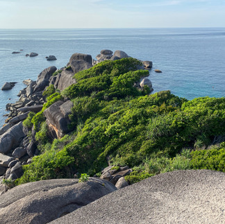 Our daily schedule is mostly diving, eating and having little naps. We wake up at 6am and after checking our tanks, mostly sit fairly quietly having our delicious cups of tea, or coffee (weird) or water (even weirder) to start the day as the sun rises. We did have an hour on the beach on one of the islands where we walked up to some rocks to stand and look at the view. The route was all stairs and well marked although at times, very narrow and you had to lean out against the railing to let other people squeeze by. A lot of, likely misplaced, trust in the Thai safety and construction standards was required! They had helpfully signposted and included warning of danger as they felt necessary. I’m not sure all of the signs were exactly what they want convey or that some might have been lost in translation though!